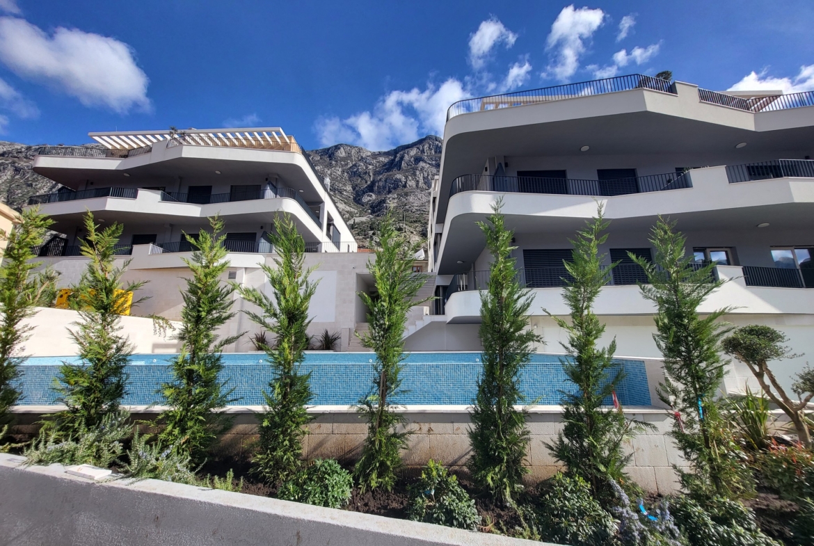 Beautiful and luxury new building in Dobrota. Brand new built apartment with new furniture. One bedroom with sea view. Full of light being on sunny side. Fully fitted kitchen. All materials in the building and in the apartment are hi quality. Building is within short walking distance to the sea. Building shared swimming pool area. Underground garage spaces which can be subject to additional cost. All amenities are close by…short driving distance to the old town of Kotor. Dobrota is one of the most popular parts of the Kotor municipality.