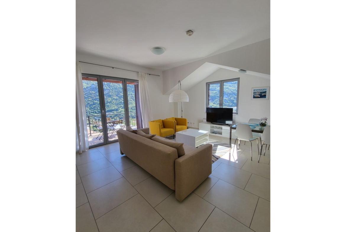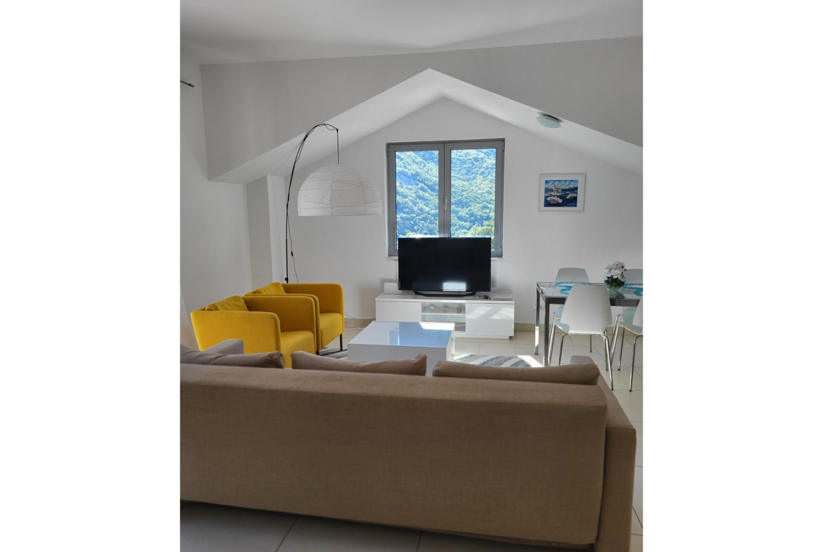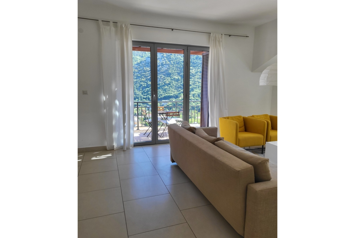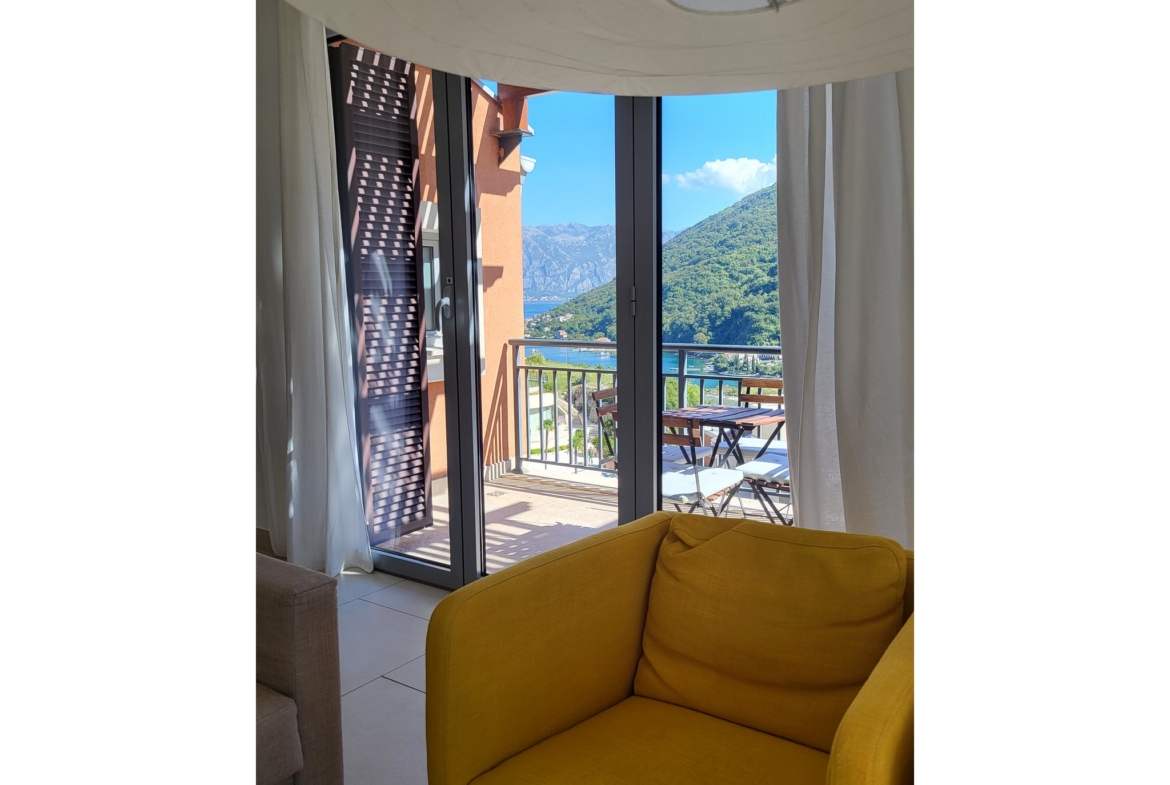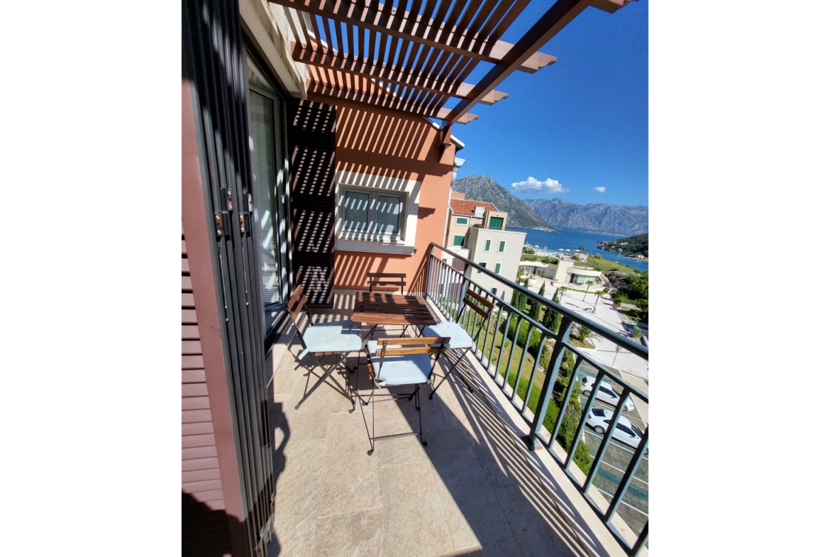 Modern beautiful complex with large shared area, one of the most beautiful complexes in Boka Bay. One bedroom apartment with great sea view! Apartment is on the second floor, has elevator. Fully furnished and fully fitted kitchen, 2 aircons, underfloor heating at the bathroom. Ready to be rented out or lived in. Allocated parking spot! Most beautiful sea view at the infinity swimming pool, absolute hi light of the complex. Spa center, very rare for complex to have-ideal for rentals-prolongs rentals and compete competition over quite rental periods. Very peaceful yet short walkig distance to the sea and short driving distance to Kotor/Tvat/Herceg Novi. Great restaurants very close by…