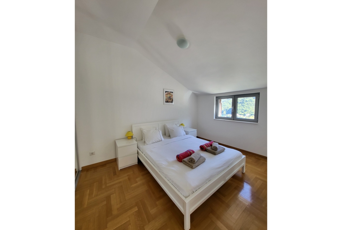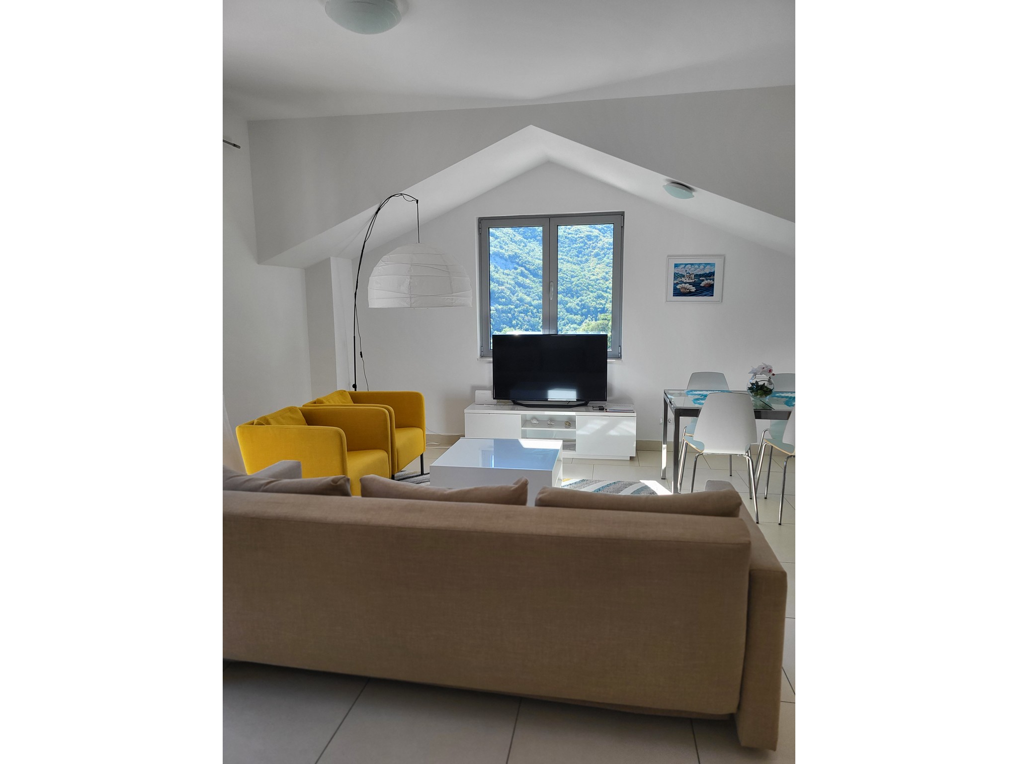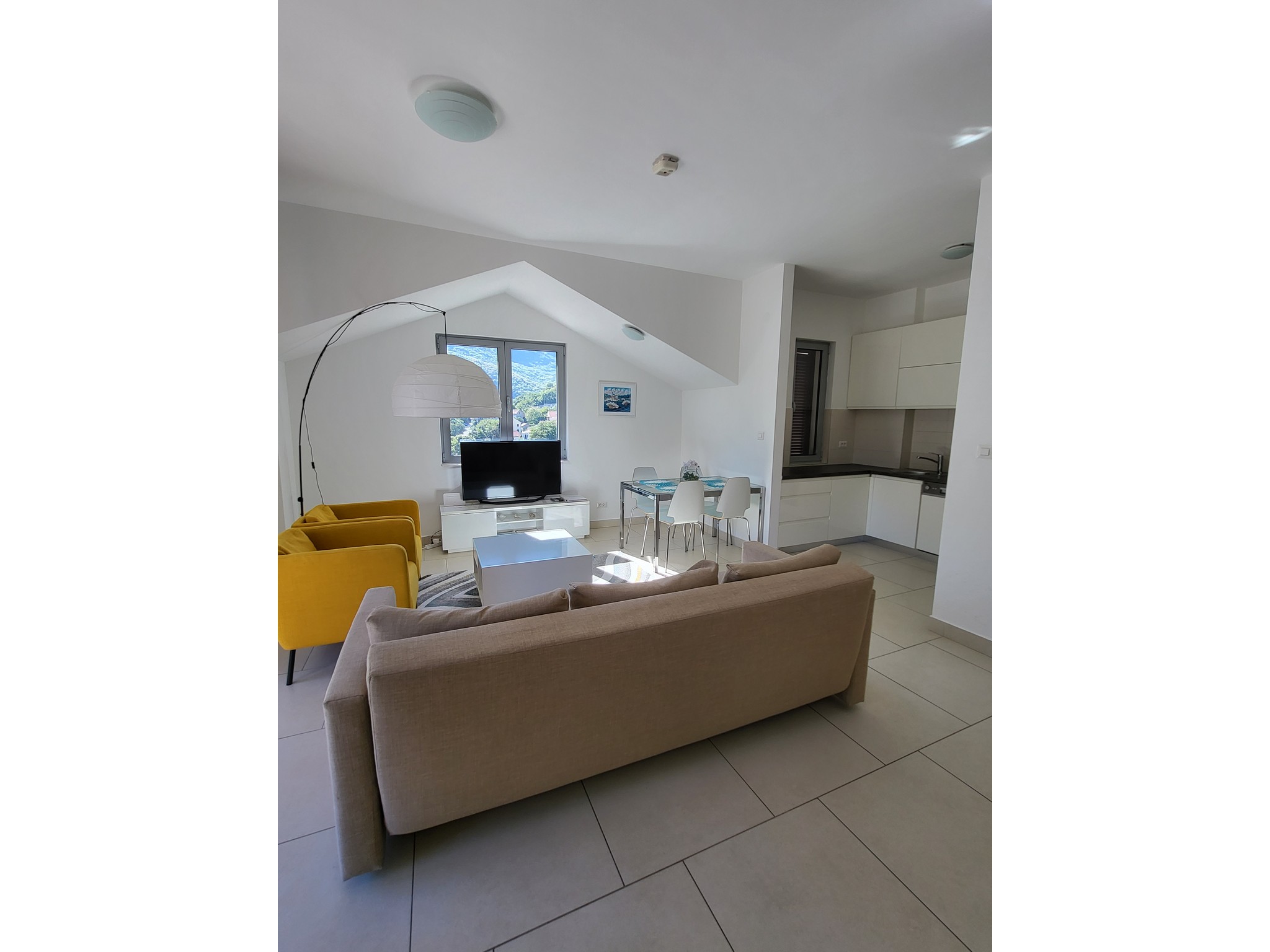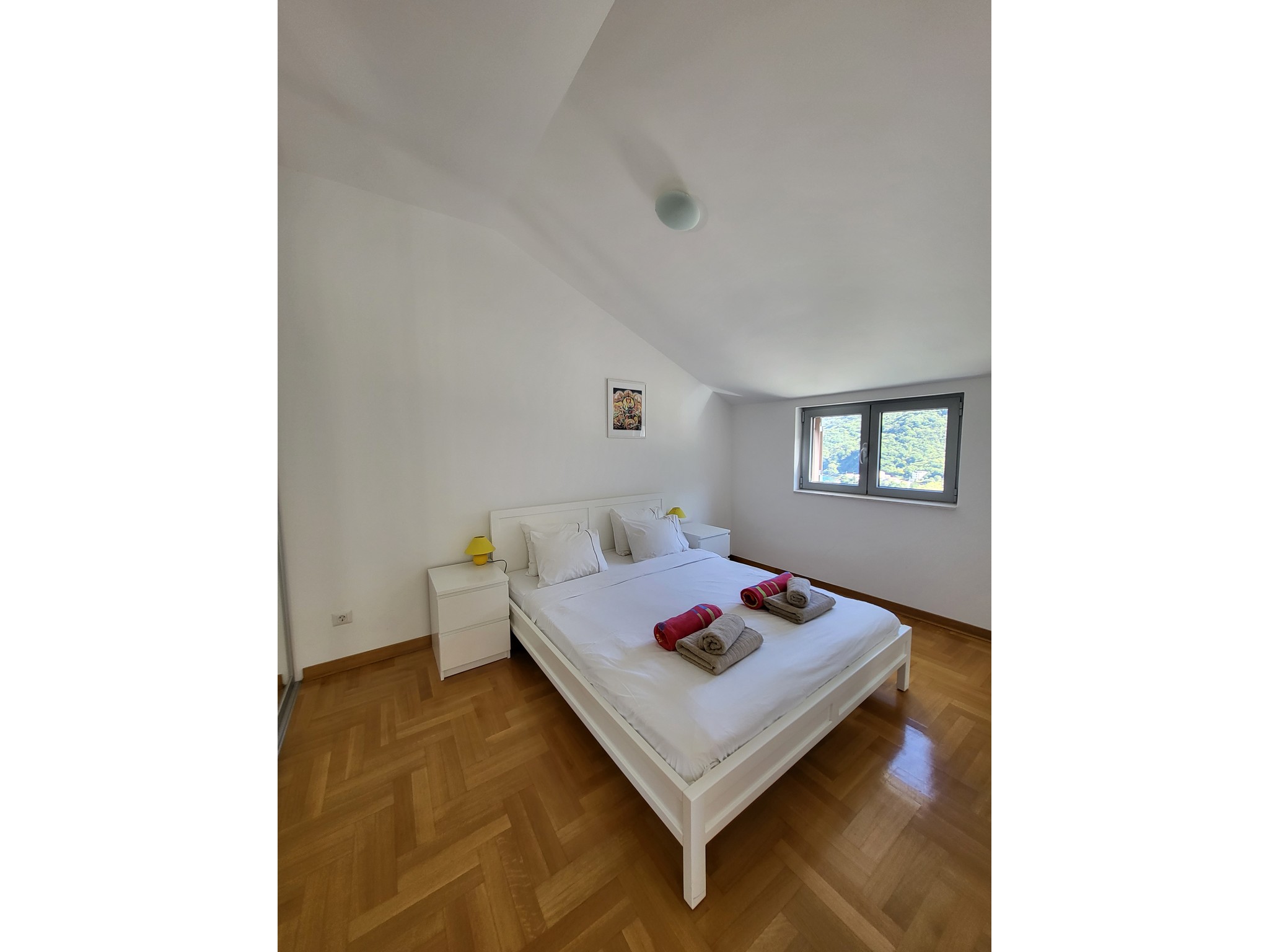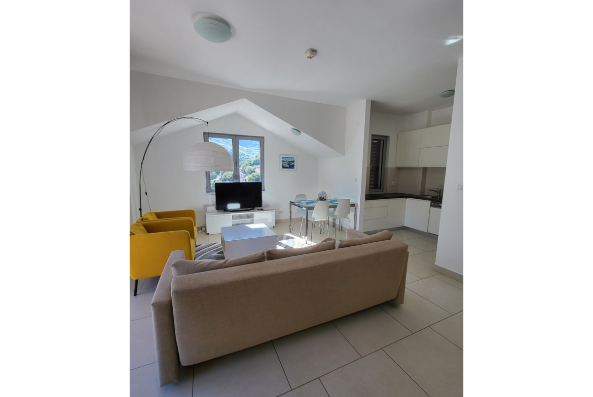 Modern beautiful complex with large shared area, one of the most beautiful complexes in Boka Bay. One bedroom apartment with great sea view! Apartment is on the second floor, has elevator. Fully furnished and fully fitted kitchen, 2 aircons, underfloor heating at the bathroom. Ready to be rented out or lived in. Allocated parking spot! Most beautiful sea view at the infinity swimming pool, absolute hi light of the complex. Spa center, very rare for complex to have-ideal for rentals-prolongs rentals and compete competition over quite rental periods. Very peaceful yet short walkig distance to the sea and short driving distance to Kotor/Tvat/Herceg Novi. Great restaurants very close by…