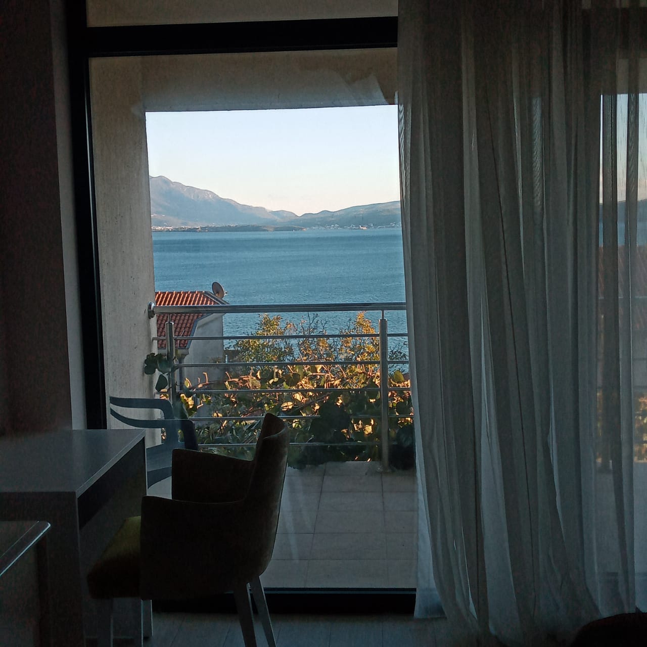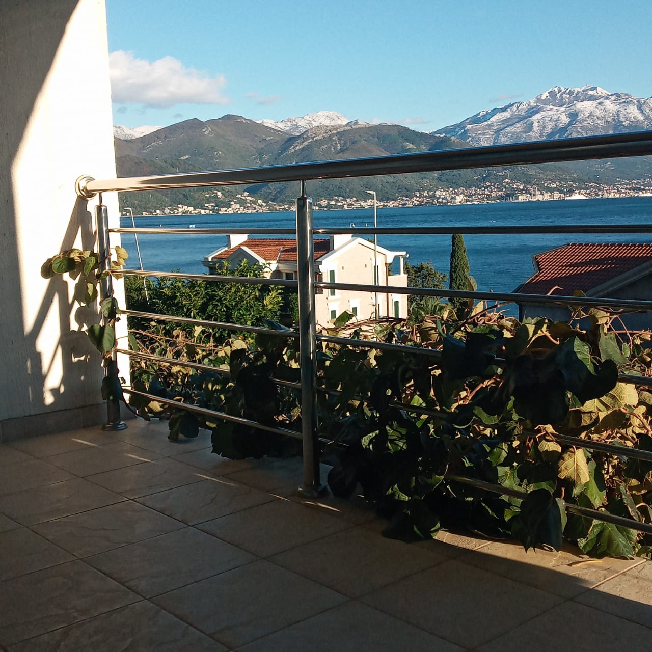 Two bedroom stunning apartment in Bijela/Herceg Novi. Only 100m from the sea. Beautiful sea and mountain views. Apartment is situated in small building and has separate entrance. Consists of two floors. First floor has 52m2 : terrace with entrance to the garden, living /kitchen area, bathroom and internal staircase to the upper floor. Second floor has 51m2: 2 bedrooms, two terraces, hallway and bathroom. Both bathrooms and ground floor have underfloor heating. Big glass windows provide lot of light and for one to enjoy the panoramic sea views. Apartment has marked parking spot. Apartment is sold fully furnished.